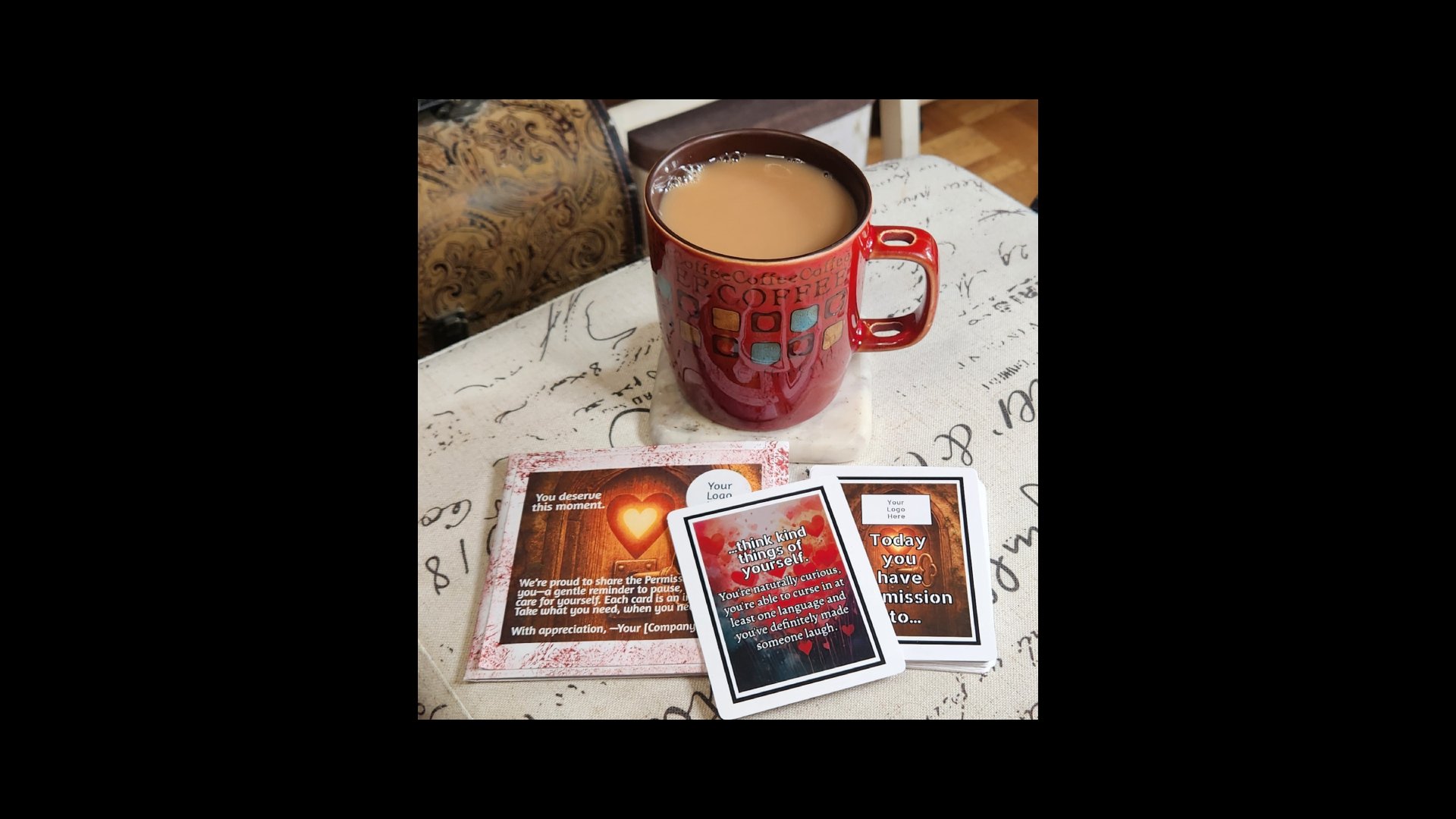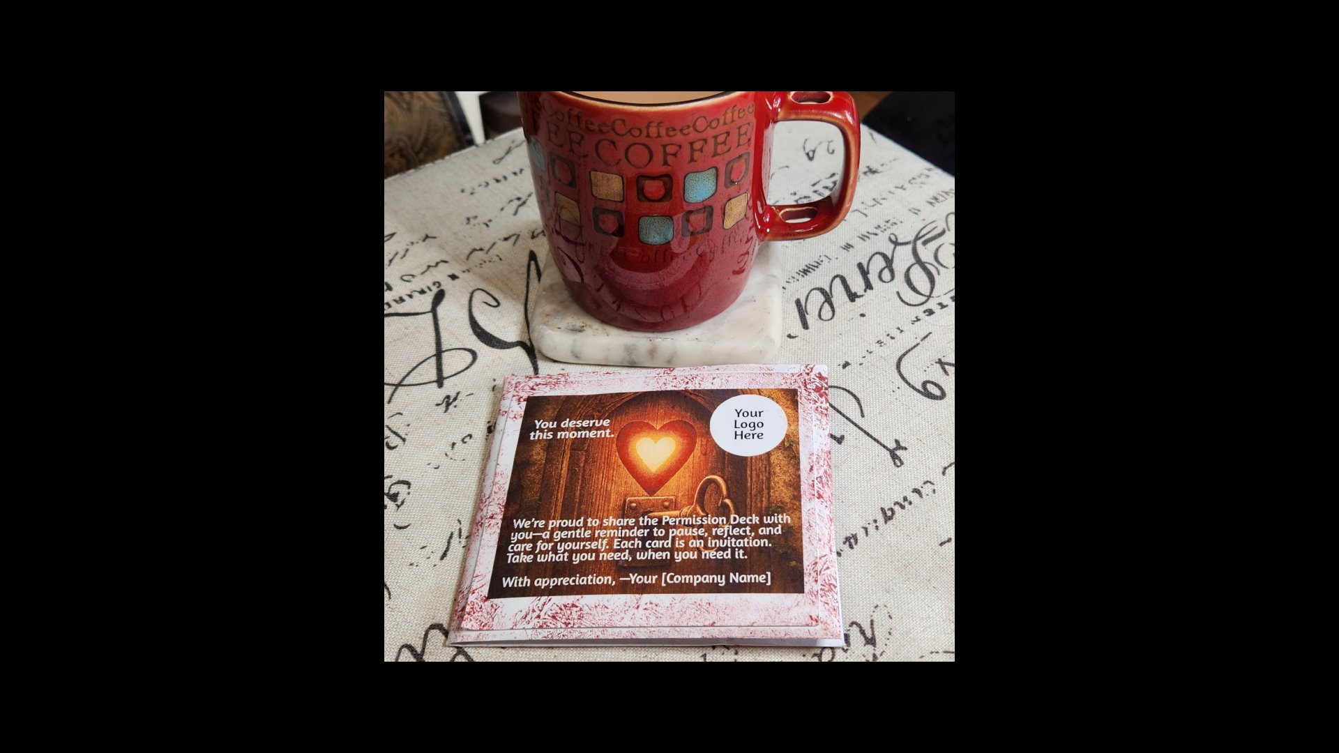 Whether you’re gifting one card or giving away 100 full decks, the Permission Deck adapts beautifully to your purpose. Each deck becomes a portable ritual of care, ready to be staged, shared, and remembered.